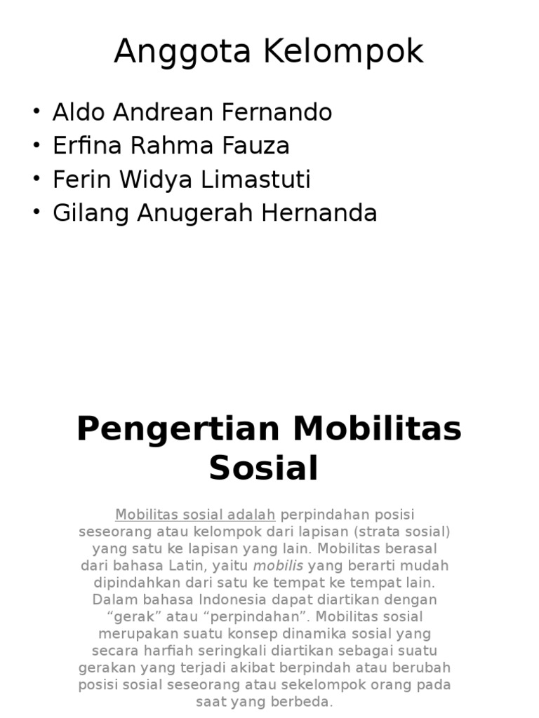 Mobilitas Sosial Social Mobility Materi Bahasan Ppt Download